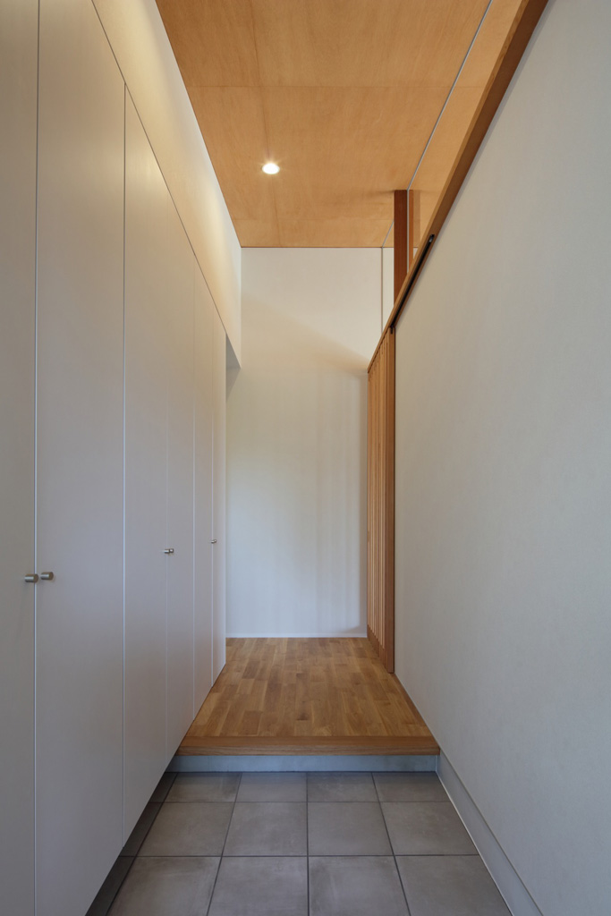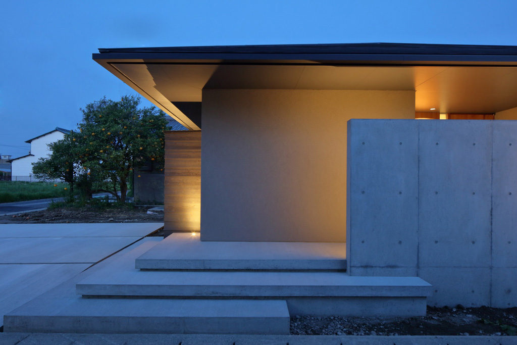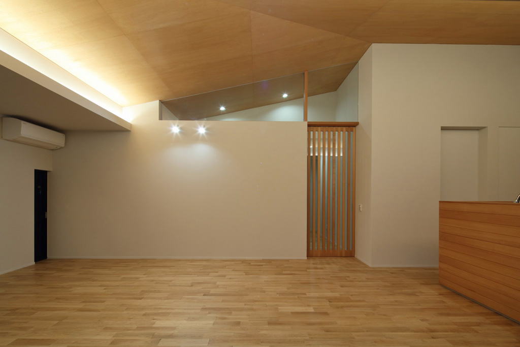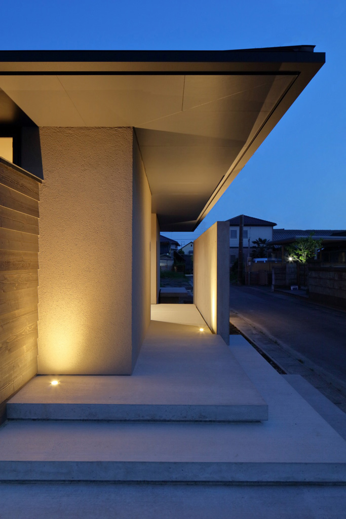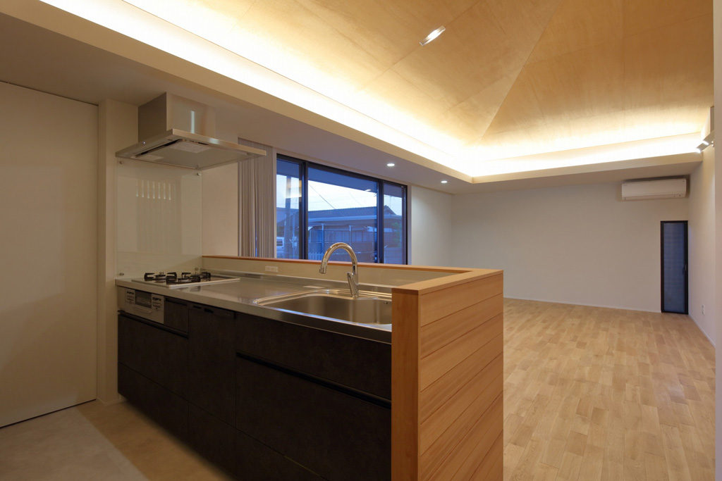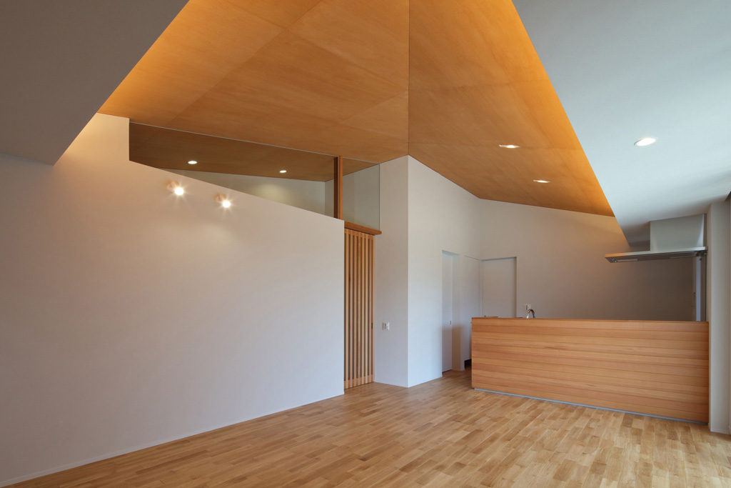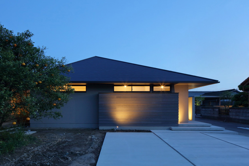 正方形のプランに、頂点をずらした方形屋根。